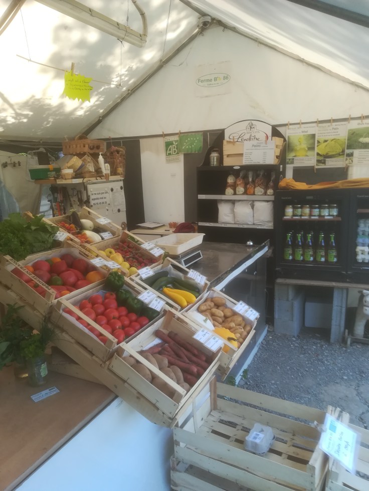 Nous sommes ouvert comme tous les Mardi, Mercredi et Vendredi de 16h à 19h, nous vous proposons en ce moment des pommes, des poires, des coings, des tomates, des courgettes, des concombres, des courges, des pommes de terre, des carottes, des betteraves, des choux raves, des oignons, des aubergines, des poivrons, des poireaux, des salades, des aromates, des œufs, du miel, des biscuits, de la farine, du jus de pomme…