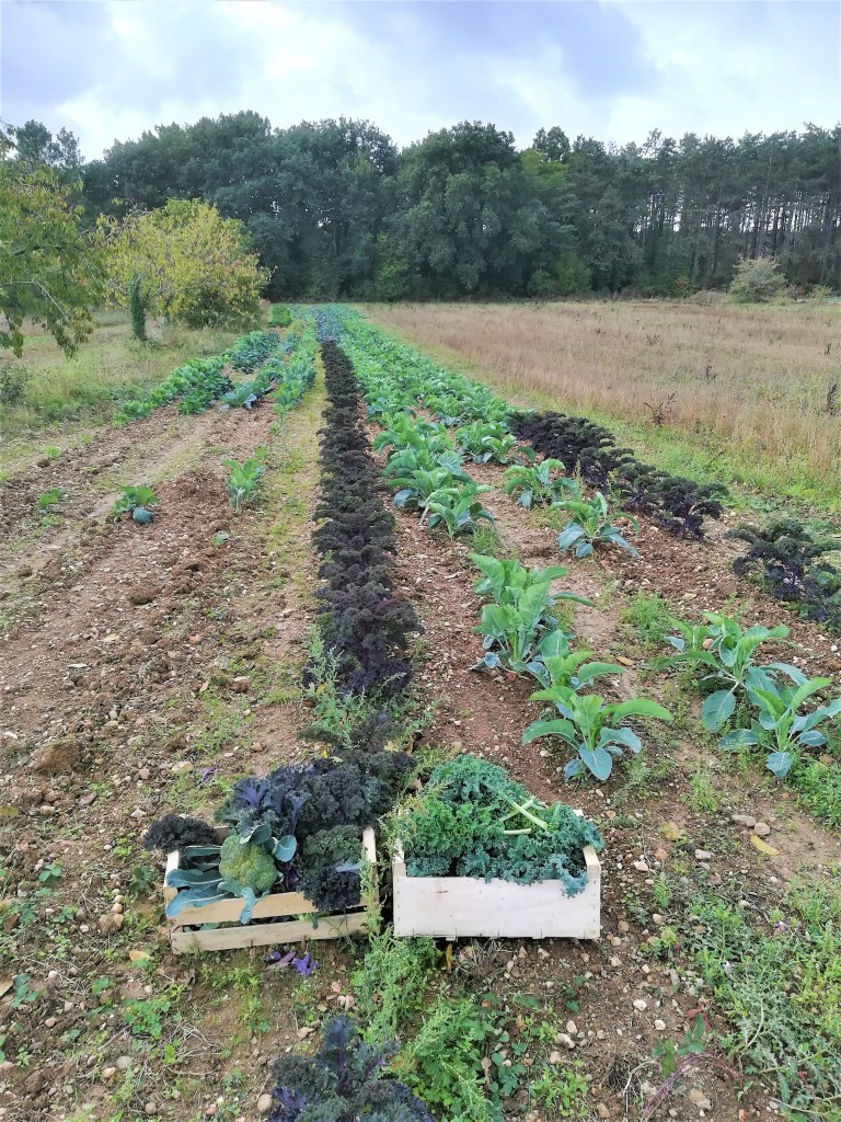 Nous cultivons toute une diversité de choux, du choux blanc ou cabus ou pointu, du choux rouges, du choux vert ou de Milan, du chou de Pontoise, du chou kale vert et du violet, du chou rave vert et du violet, du chou chinois, du chou brocoli, du chou fleur blanc, du orange et du violet, du chou romanesco. Tant de diversité pour autant de délicieuses recettes, de bienfaits et d’apports nutritionnels. Saviez vous par exemple que le chou kale est le légume le plus protéiné ?